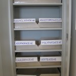 Bitkiler herbaryum dolaplarına yerleştirilmeden önce bitki etiketinin üzerindeki tüm bilgiler bir karta yazılıp alınır. Özel yapılmış dolaplara il, ilçe ve köylere göre alfabetik olarak düzenlenir. Bu yöntemle belirli bölgede çalışacak bir araştırıcı bu bölgeye gitmeden önce bölgeden toplanmış örneklerin listesini çikarır ve çalışmasını planlar.